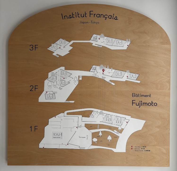 スピーキング試験は、藤本壮介さん設計の日仏学院新校舎で行われました。まず30分間の準備を行う部屋に通されます。ここでは2つのお題が与えられ、そのうち1つを自分で選んで準備を行います。